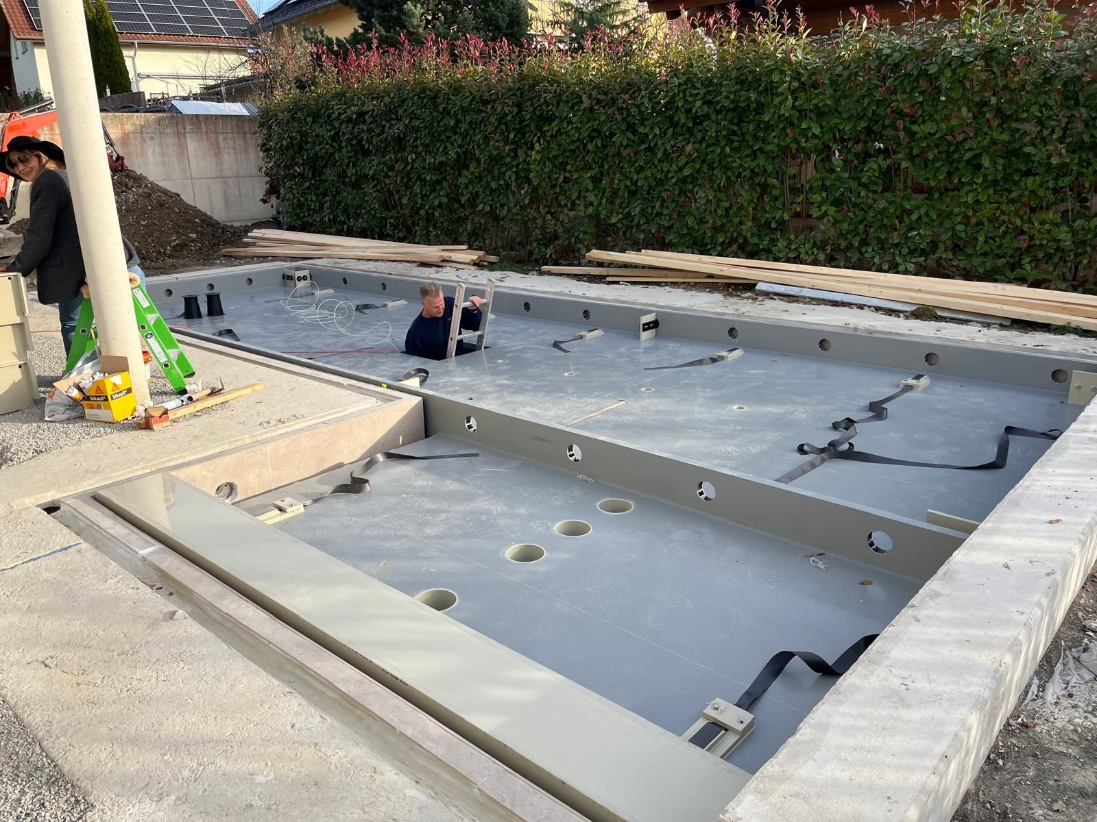 L-förmiger Außenpool mit Floor4Pool